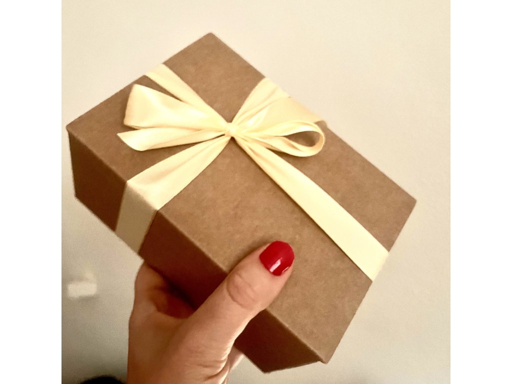 - elegantní dárkovou krabičku se zlatou mašlí