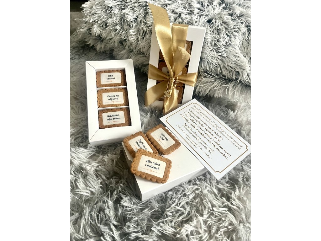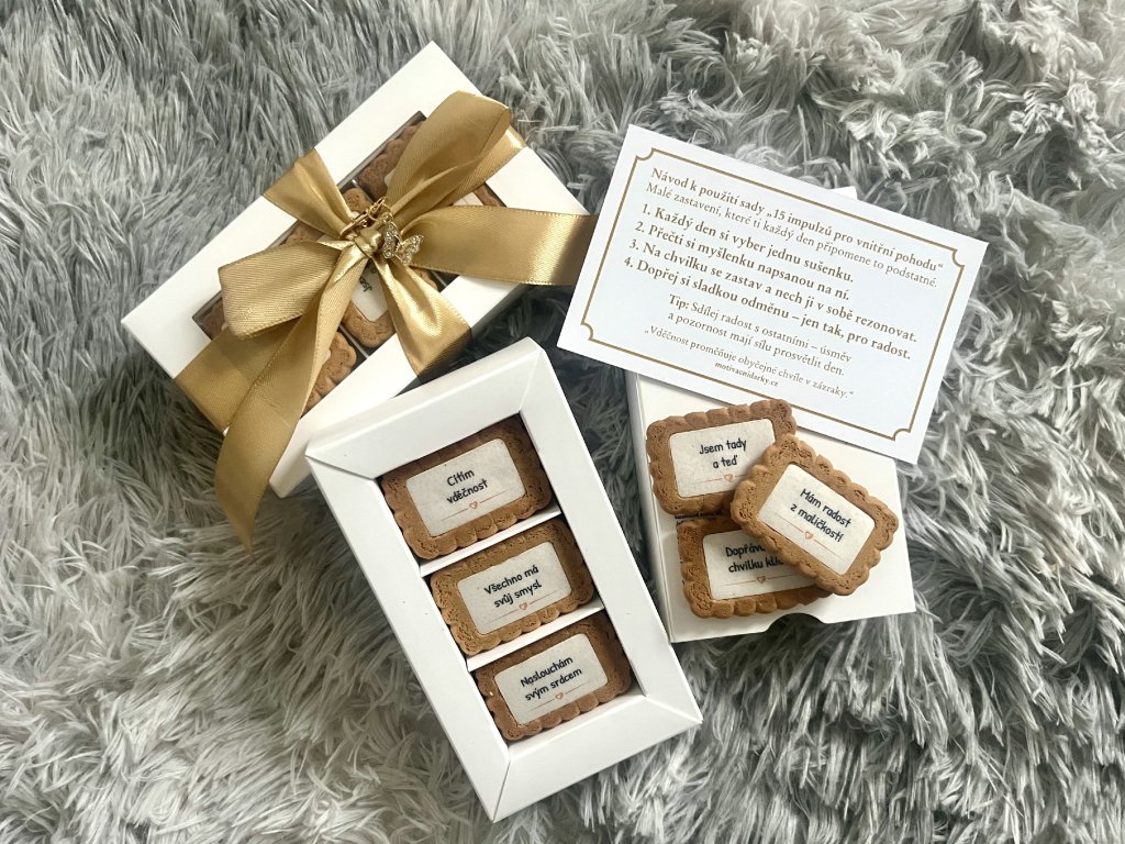 Originální dárek, který potěší a inspiruje. Motivační sušenky s 15 denními impulzy pro klid, motivaci a drobnou radost.